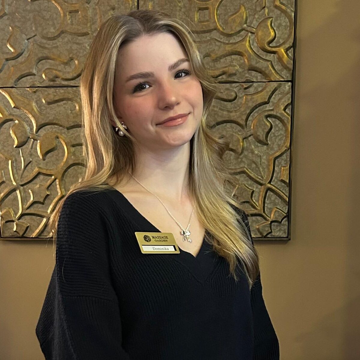Poznaj Dominikę, naszą uważną i empatyczną recepcjonistkę, która z zaangażowaniem zadba o Twój komfort od pierwszej chwili. Jej wrażliwość i umiejętność słuchania sprawiają, że potrafi doradzić w wyborze masażu, idealnie dopasowanego do Twoich potrzeb. Jako studentka psychologii, Dominika doskonale wyczuwa emocje, co pozwala jej tworzyć przestrzeń pełną zrozumienia, serdeczności i spokoju. Kontakt z nią to gwarancja ciepłego przyjęcia i życzliwego wsparcia.